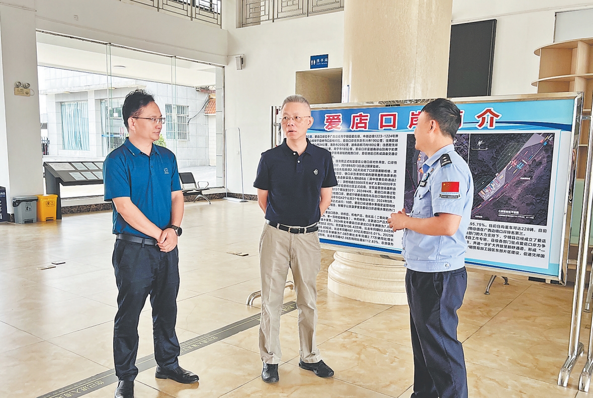 2025年7月10日,市政協(xié)副主席張海(中)率隊(duì)到寧明縣愛(ài)店口岸開(kāi)展“暢通國(guó)際國(guó)內(nèi)雙循環(huán),打通消費(fèi)流通堵點(diǎn),努力促進(jìn)內(nèi)外貿(mào)更好增長(zhǎng)”專(zhuān)題調(diào)研。