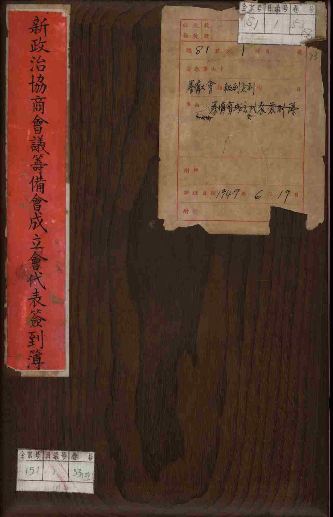 ▲新政協(xié)籌備會成立會代表簽到簿