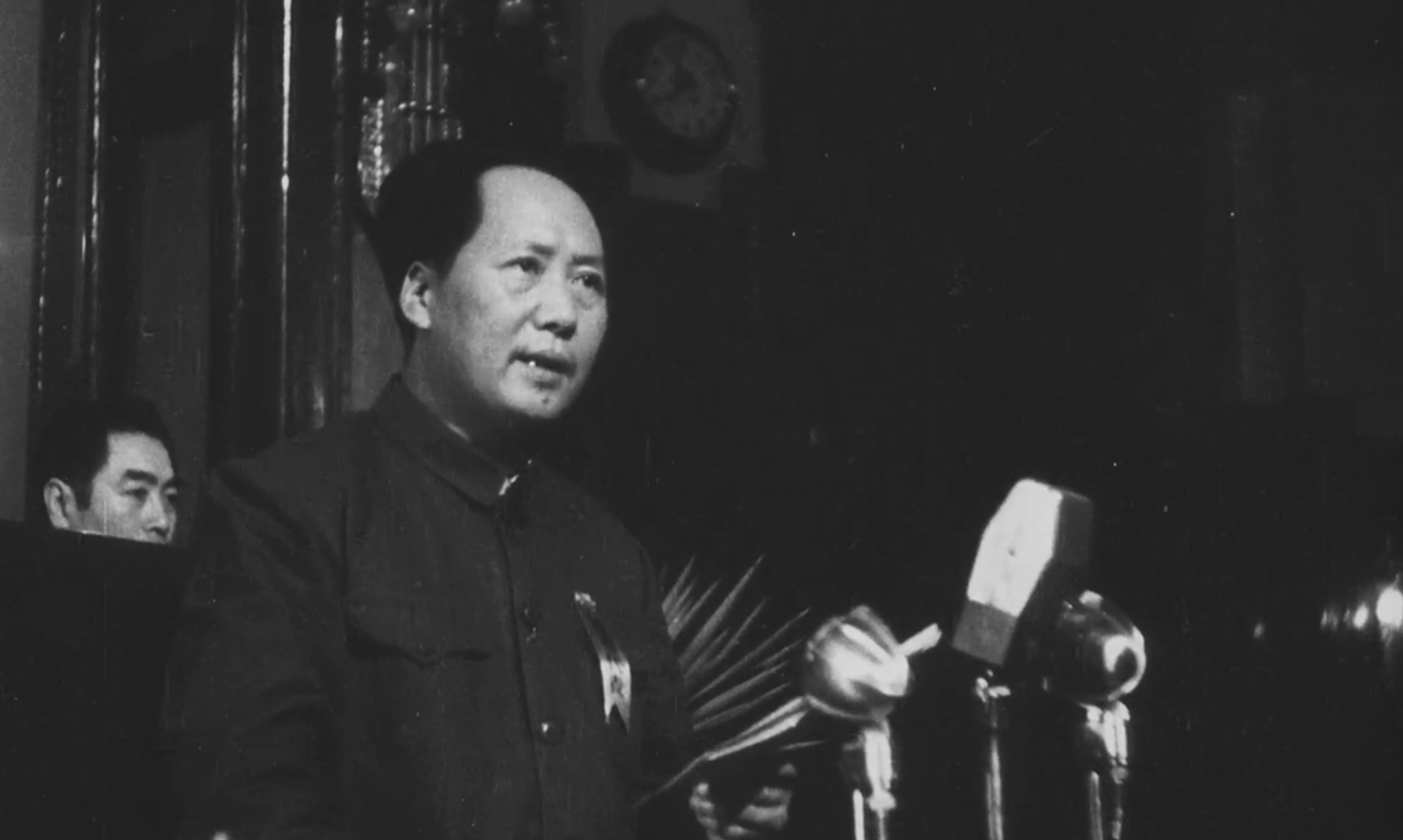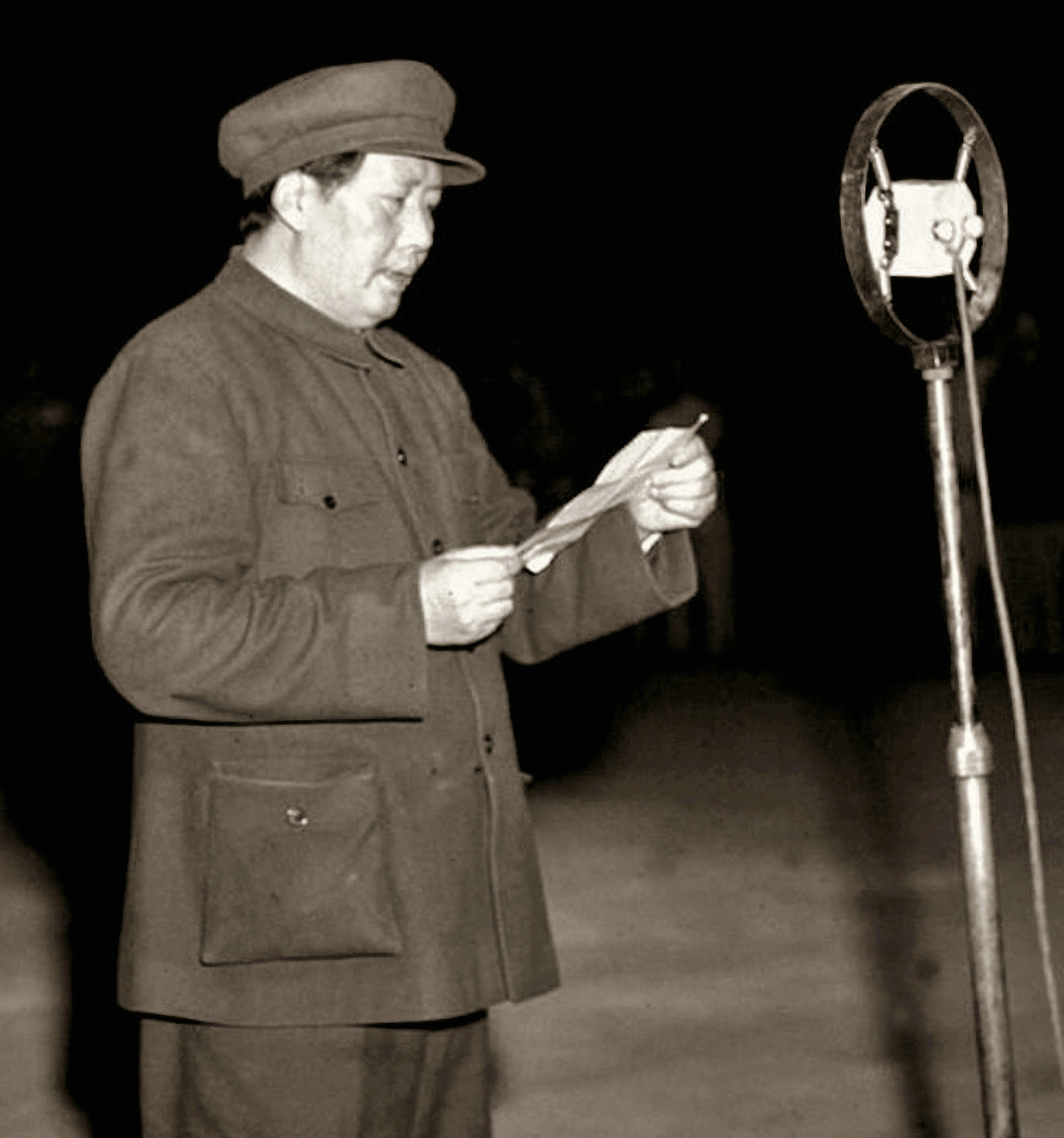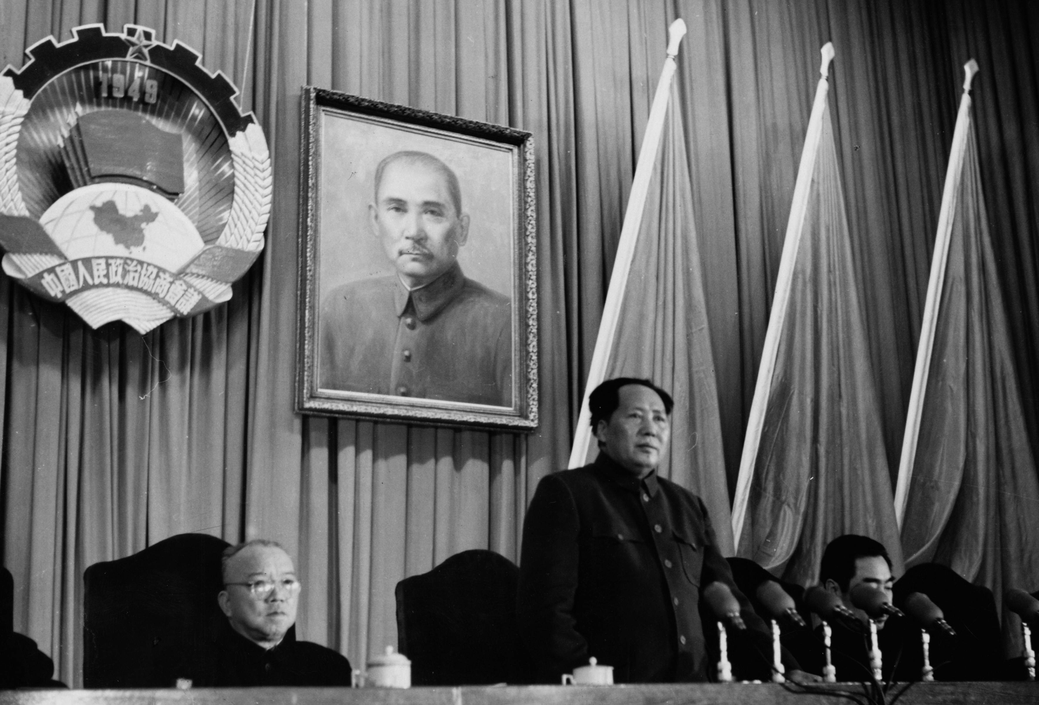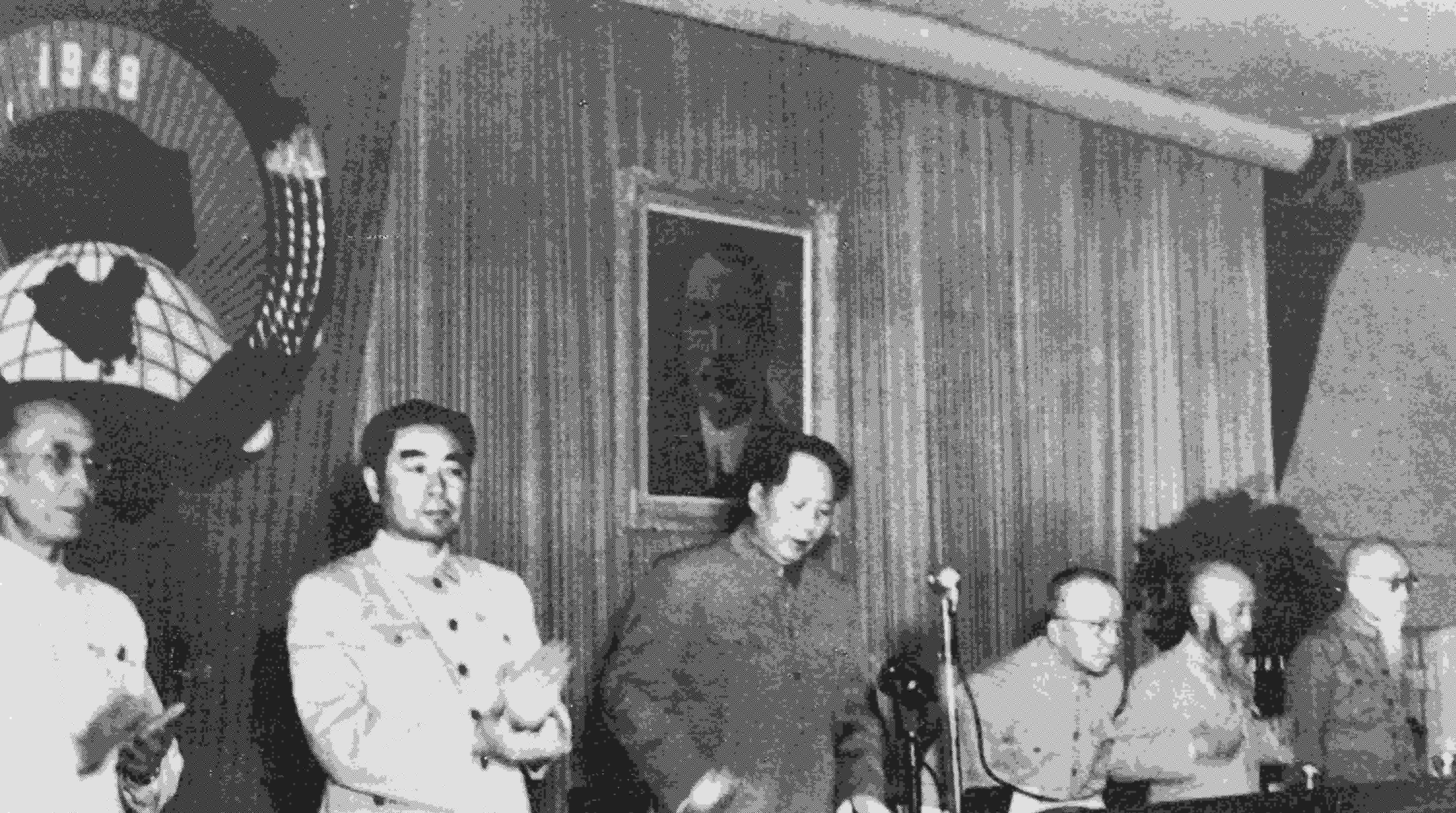 ▲毛澤東宣讀《中華人民共和國中央人民政府公告》