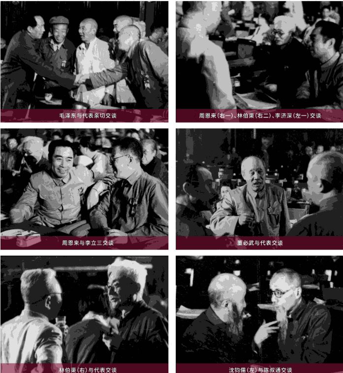 ▲新政協(xié)籌備會代表們在熱烈交談