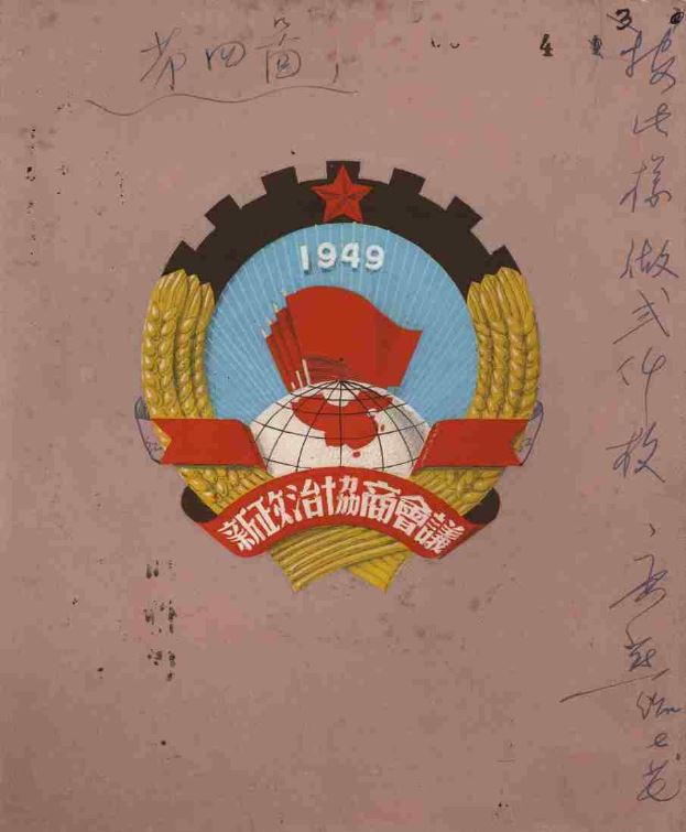 1949年7月2日,籌備會常委會秘書長辦公室第五次會議決定將政協(xié)會徽交鐘靈負責組織設(shè)計。經(jīng)籌備會常委會傳閱通過,正式制作了會徽。中國人民政治協(xié)商會議第一屆全體會議期間,政協(xié)會徽懸掛在會場主席臺的中央。
