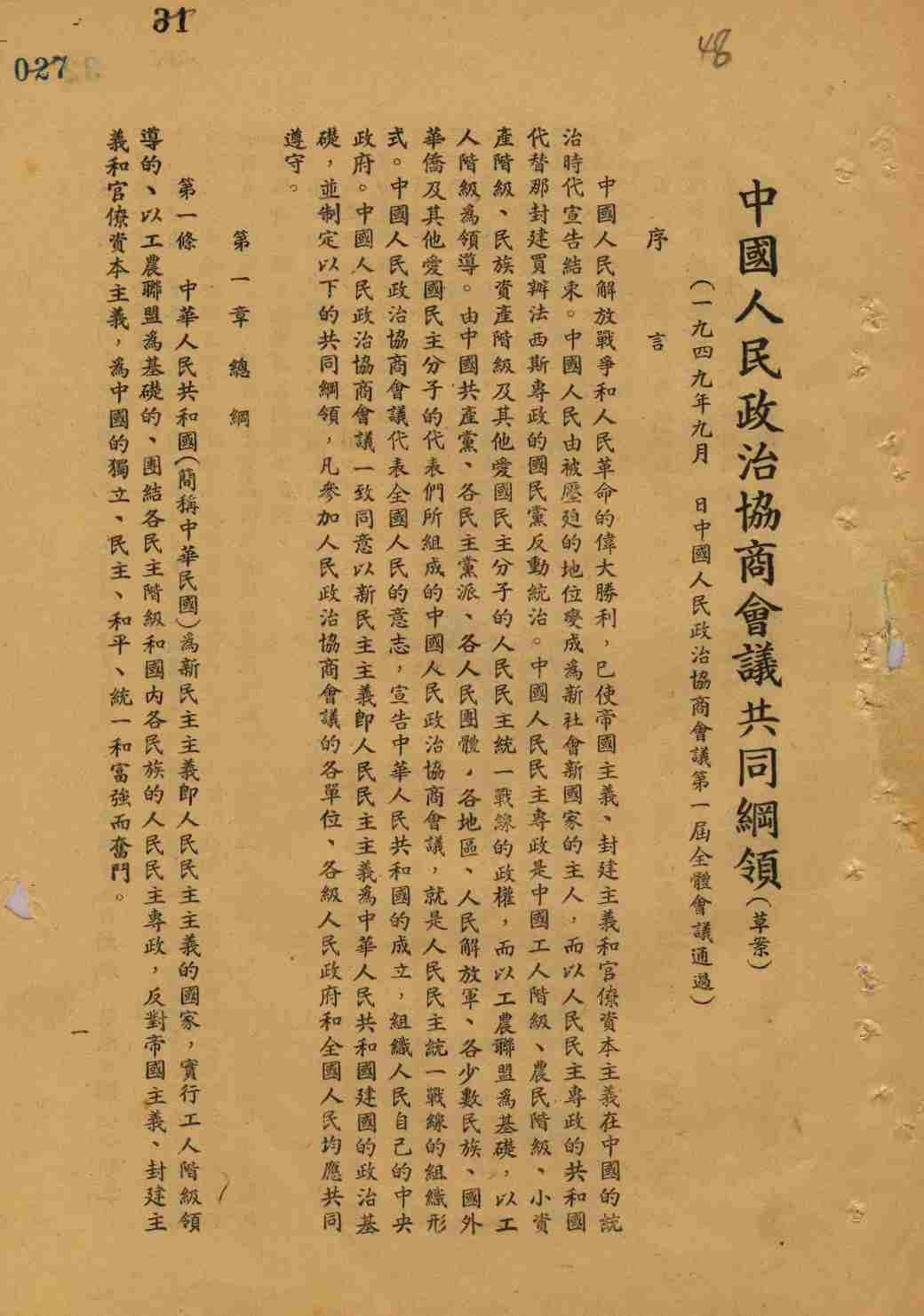 ▲《中國人民政治協(xié)商會議共同綱領(lǐng)》(草案)