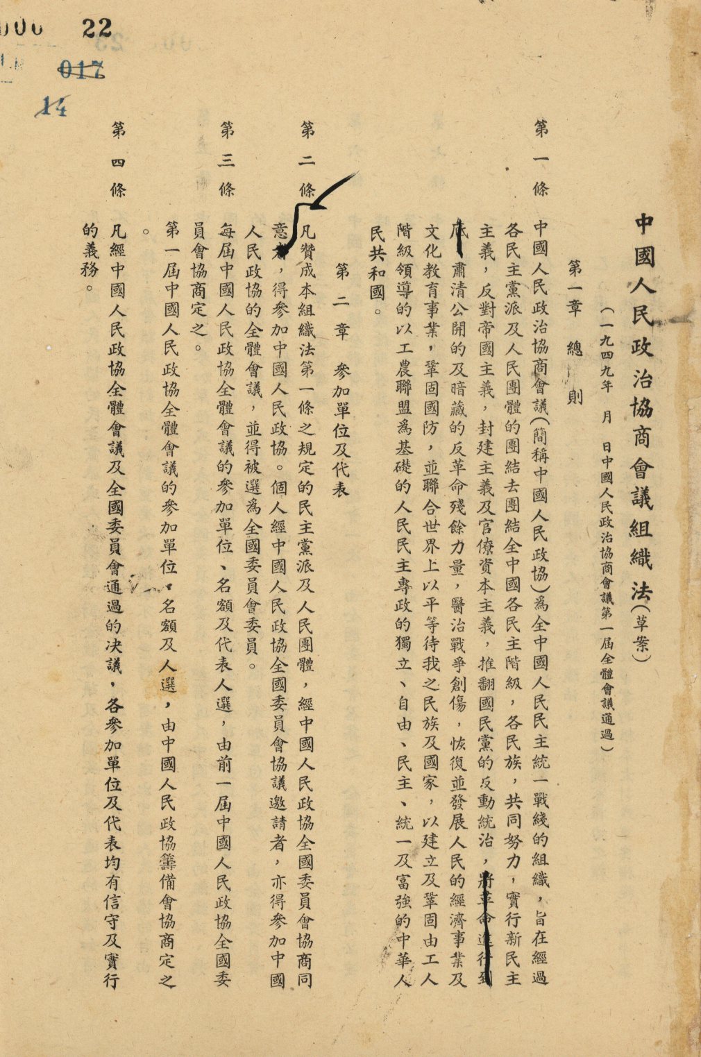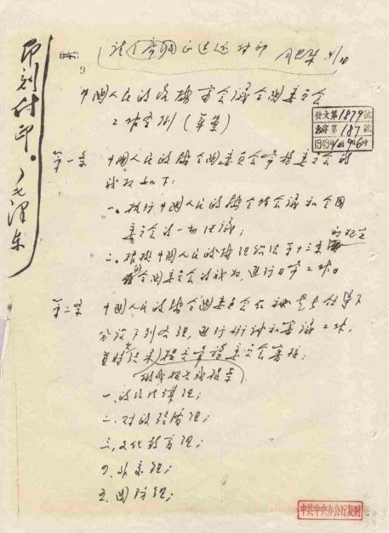▲《中國人民政治協(xié)商會議組織法》(草案)
