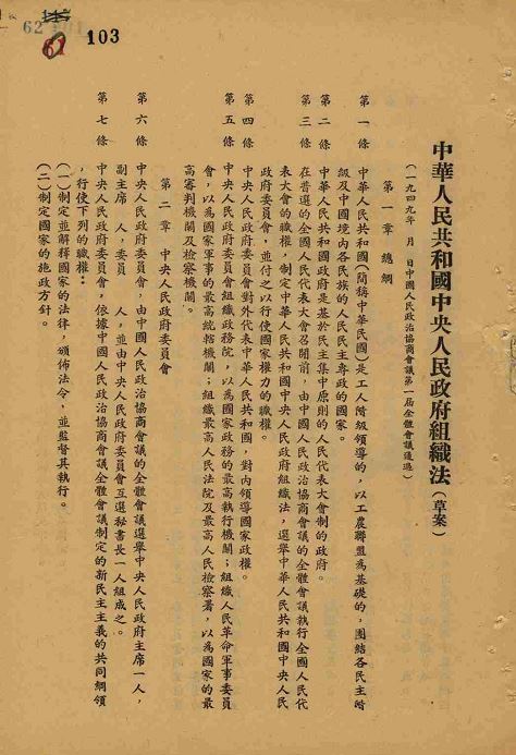 ▲《中華人民共和國中央人民政府組織法》(草案)