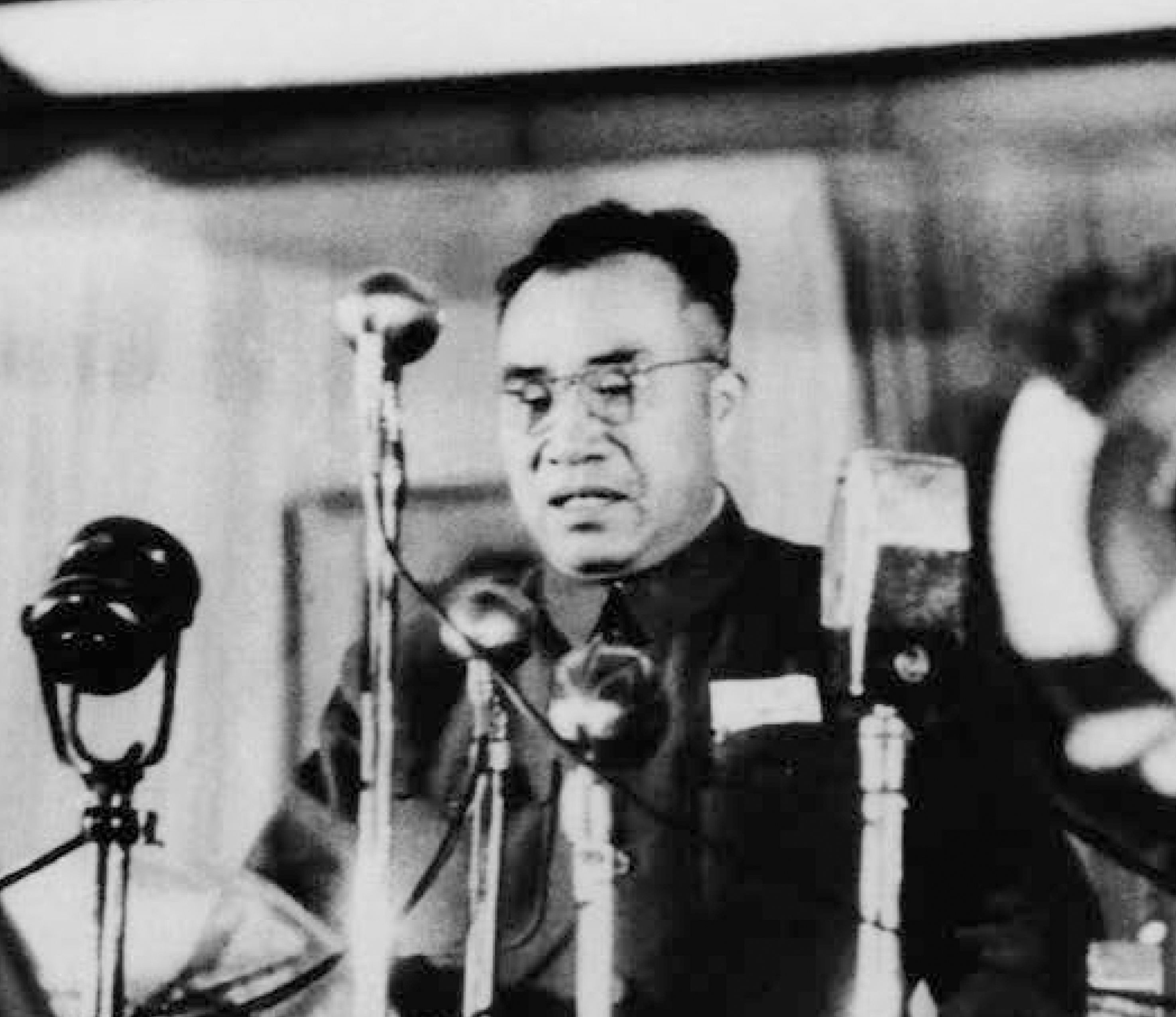 ▲毛澤東宣讀人民英雄紀念碑碑文