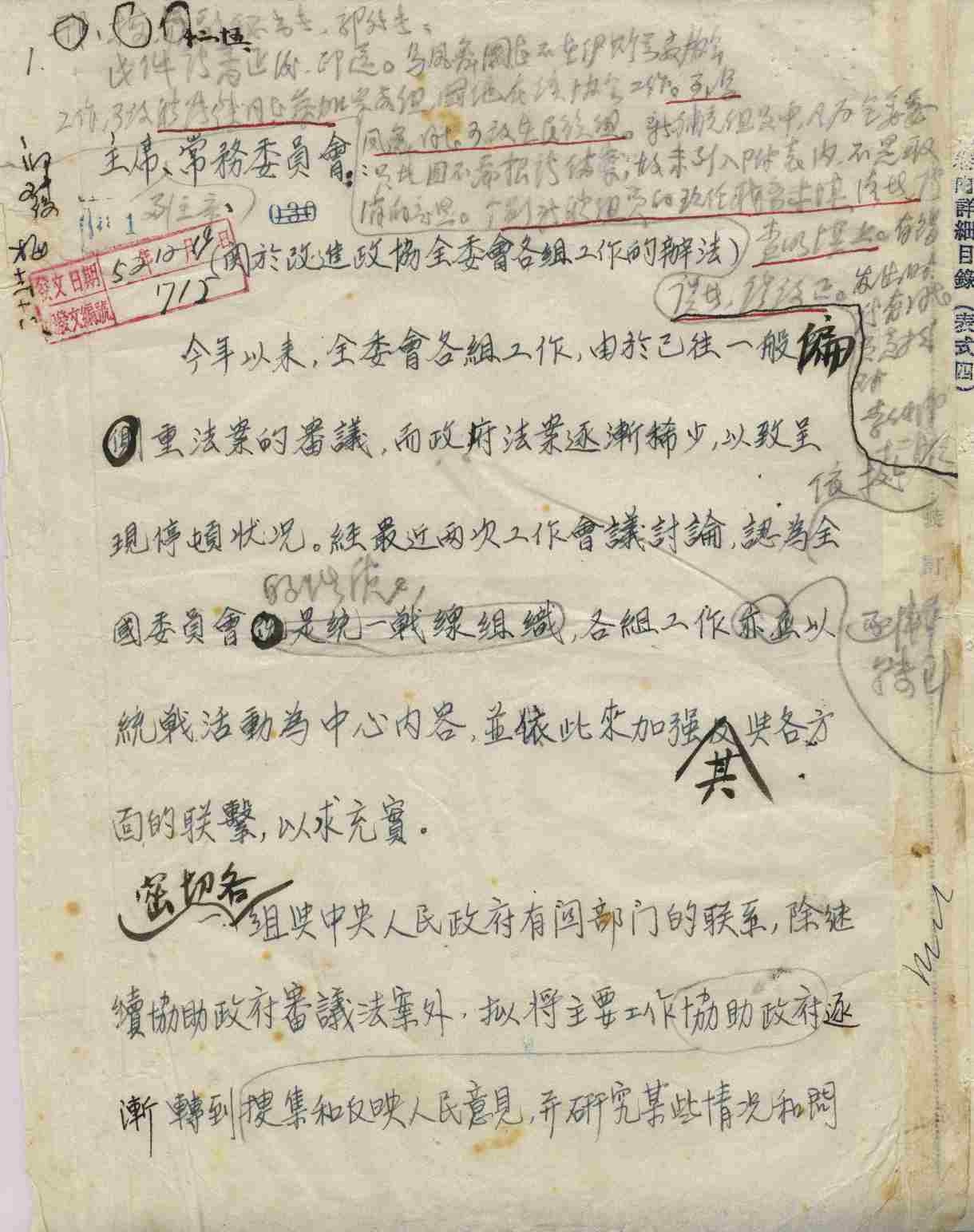 ▲李維漢關(guān)于改進全國政協(xié)各組工作的辦法的報告