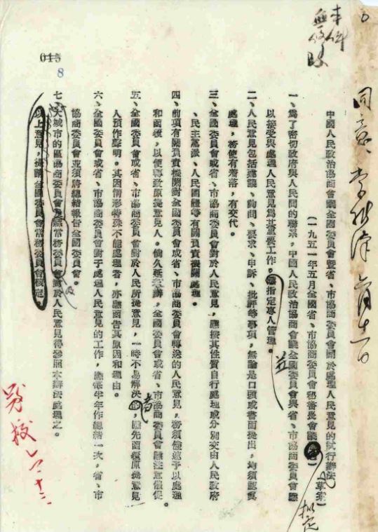 ▲全國政協(xié)暨省市協(xié)商委員會關(guān)于處理人民意見試行辦法(草案)(1951年5月全國省、市協(xié)商委員會秘書長會議擬定)