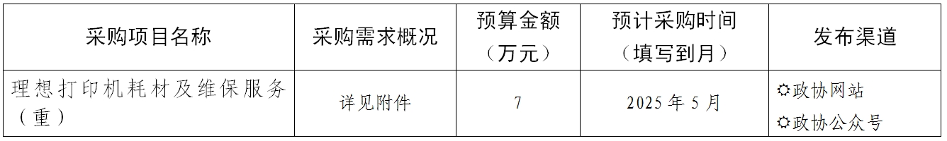 中國人民政治協(xié)商會議廣西壯族自治區(qū)委員會辦公廳理想打印機(jī)耗材及維保服務(wù)(重)采購意向公告
